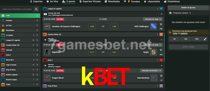 O kbet oferece uma grande seleção de opções de apostas em e-sports com probabilidades competitivas